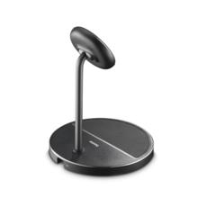 To propozycja na sprawne i wygodne ładowanie iPhone’a bez plątaniny kabli, za to z obsługą MagSafe. Dzięki konstrukcji z podstawką i magnetycznym pierścieniem na wysięgniku, telefon można obracać o 360 stopni. Wystarczy położyć urządzenie na nim, a proces zasilania energią z mocą 15 W rozpoczyna się automatycznie. Z kolei podstawka jest w stanie przywrócić do życia słuchawki, głośnik czy powerbank z mocą ładowania 5 W.