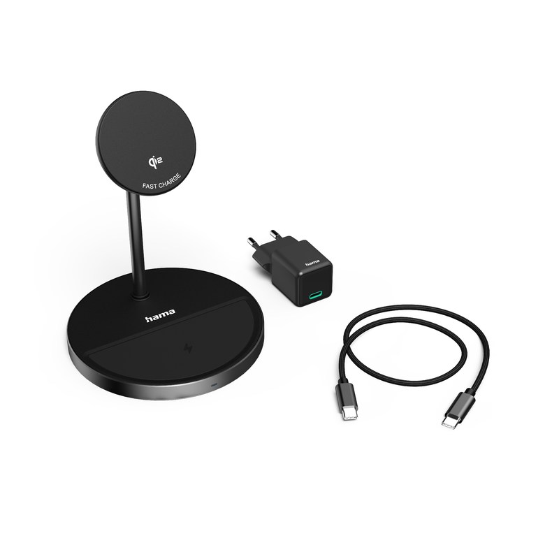 Ładowarka indukcyjna Hama Stand 2w1 Qi2 Fast Charge o mocy 15 W jest dostępna w sprzedaży w katalogowej cenie 199,90 zł.