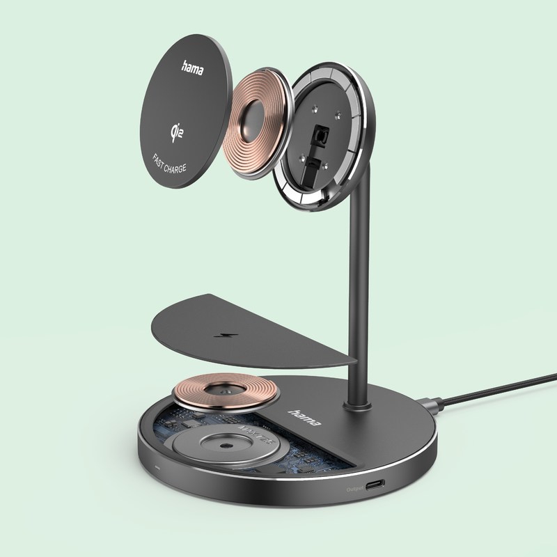 Ta ładowarka dołączyła do grona indukcyjnego segmentu gadżetów od niemieckiego producenta. Wytrzymała, aluminiowa konstrukcja jest prosta i składa się z okrągłej szerszej podstawki, wysięgnika i mniejszego pierścienia z silnym magnesem do umieszczenia smartfona. Komplet uzupełnia wyjątkowo elastyczny kabel ładujący z plecionego nylonu w zewnętrznej warstwie, podłączany do podstawki ze złączem USB-C. Całość została utrzymana w eleganckim czarnym kolorze. Wymiary urządzenia wynoszą: długość 150 mm, szerokość 120 mm, wysokość 120 mm przy 353 g wagi.